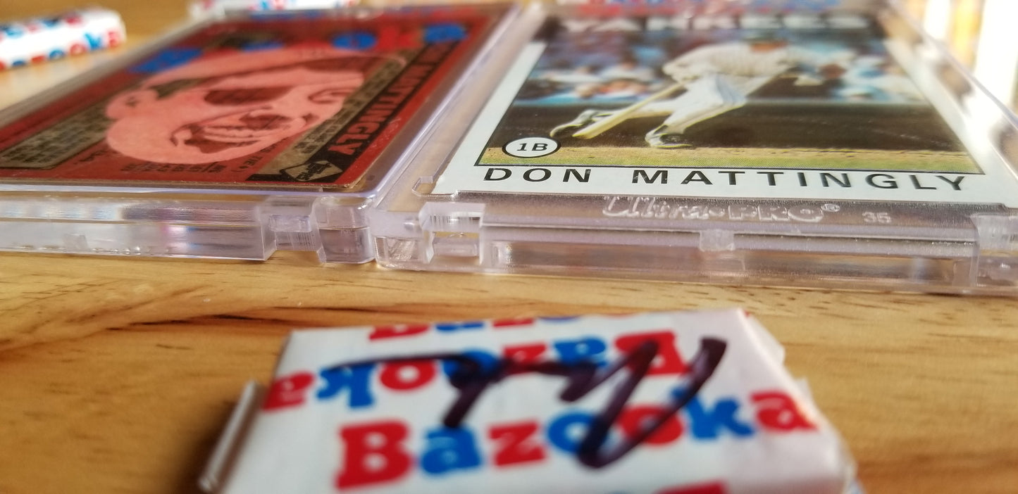 This gum card features additional vinyl material for the Bazooka lettering, and matching Ultra Pro card holder.