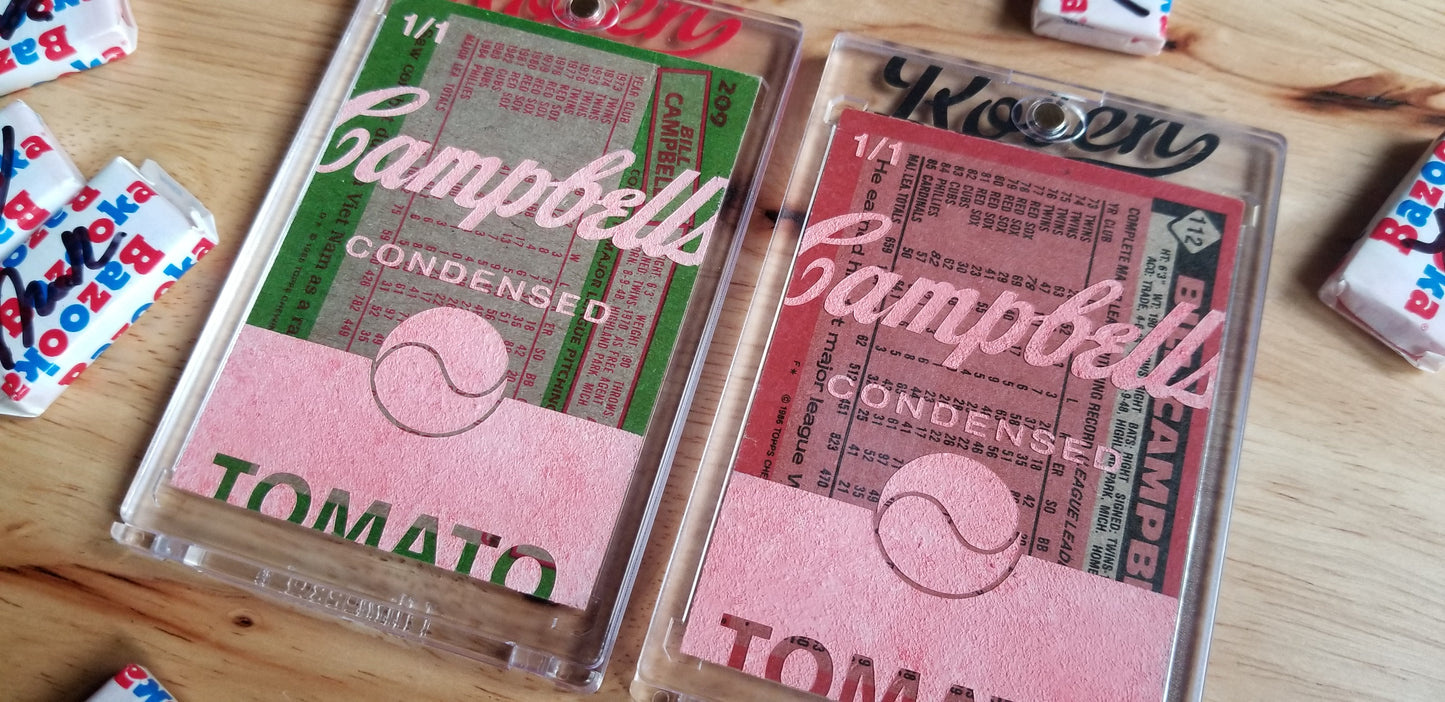 After purchasing some old wax packs to study the size and texture of gum sticks, I developed my own paint techniques in order to replicate it. Now, I hand-paint bubble gum directly onto vintage baseball cards to create small collectibles.