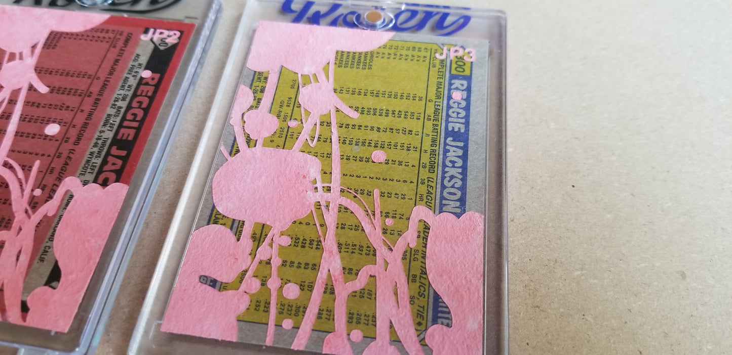 After purchasing some old wax packs to study the size and texture of gum sticks, I developed my own paint techniques in order to replicate it. Now, I hand-paint bubble gum directly onto vintage baseball cards to create small collectibles.