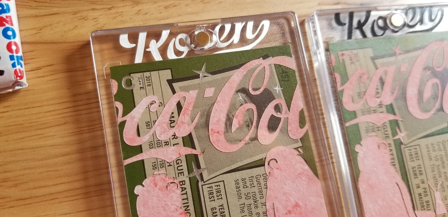 After purchasing some old wax packs to study the size and texture of gum sticks, I developed my own paint techniques in order to replicate it. Now, I hand-paint bubble gum directly onto vintage baseball cards to create small collectibles.